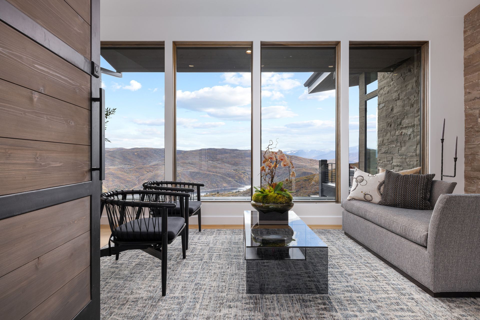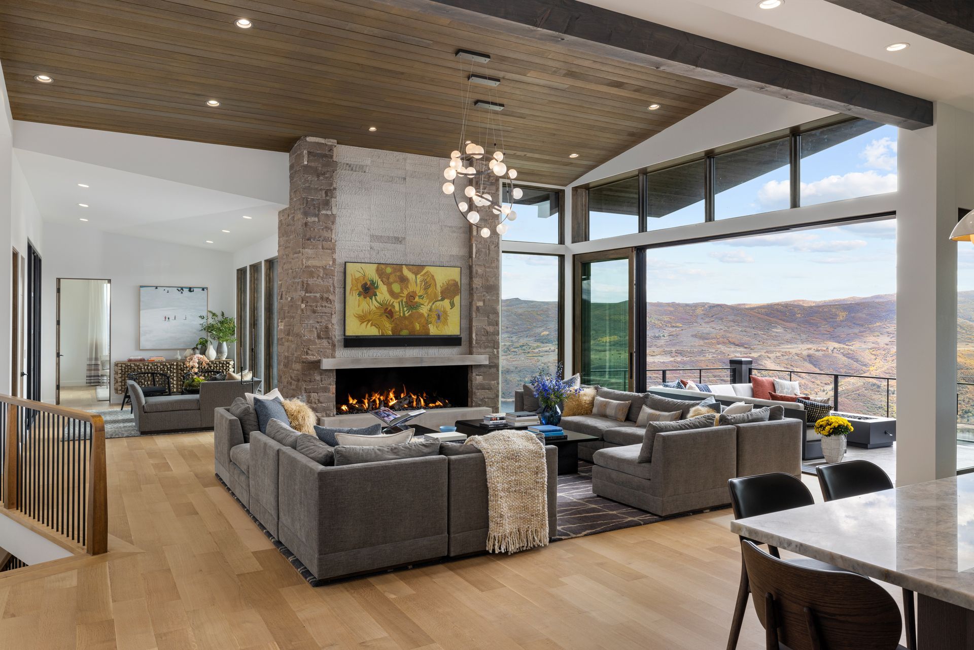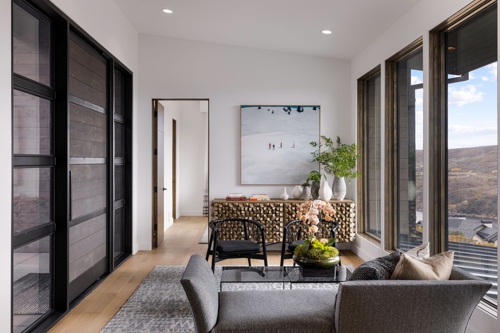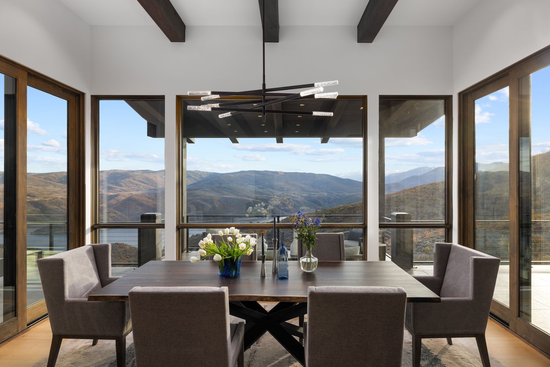 Perched above the sparkling waters of the Jordanelle Reservoir and capturing unobstructed vistas of Mount Timpanogos, this extraordinary custom home is a contemporary take on refined mountain living. The design team strived for timeless elegance and sophistication within the open-concept layout. The home showcases rich natural materials and expansive floor-to-ceiling windows that flood the interiors with light and frame the stunning alpine surroundings. Every detail has been thoughtfully curated for effortless entertaining and comfortable everyday living. Highlights include an exhibition-style chef's kitchen outfitted with Sub-Zero and Wolf appliances and a striking glass-enclosed wine cellar to display and preserve the client’s collection, The primary suite serves as a private sanctuary, featuring a spa-inspired steam shower, heated flooring, and direct access to a secluded hot tub—perfect for soaking in the majestic mountain views. The residence was designed and curated for its owners as a second home to act as a relaxing destination and a unique place to work remotely and carry out professional business. Access to outdoor adventures surrounds the property and the design supports the various activities as well as a restful destination stay.