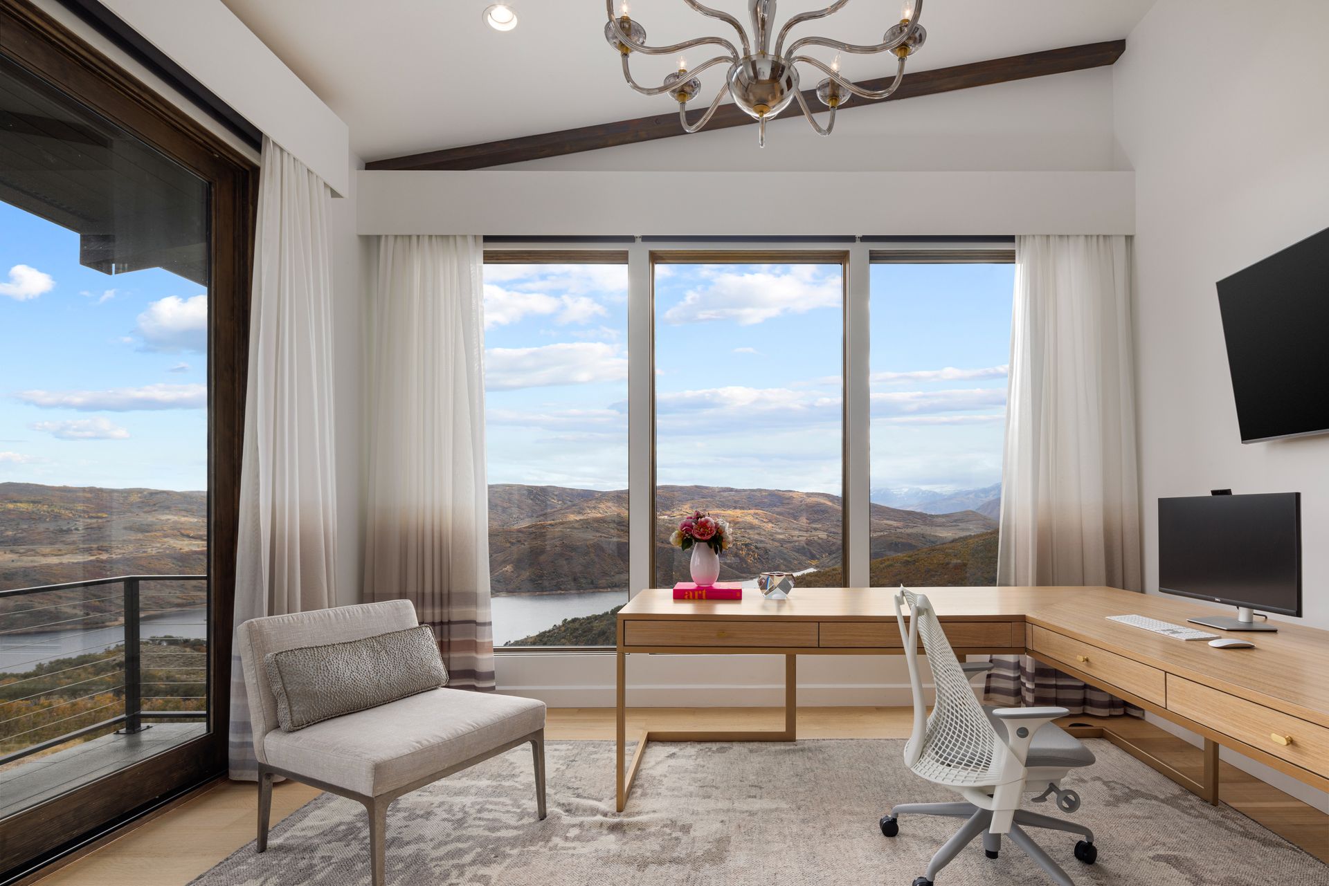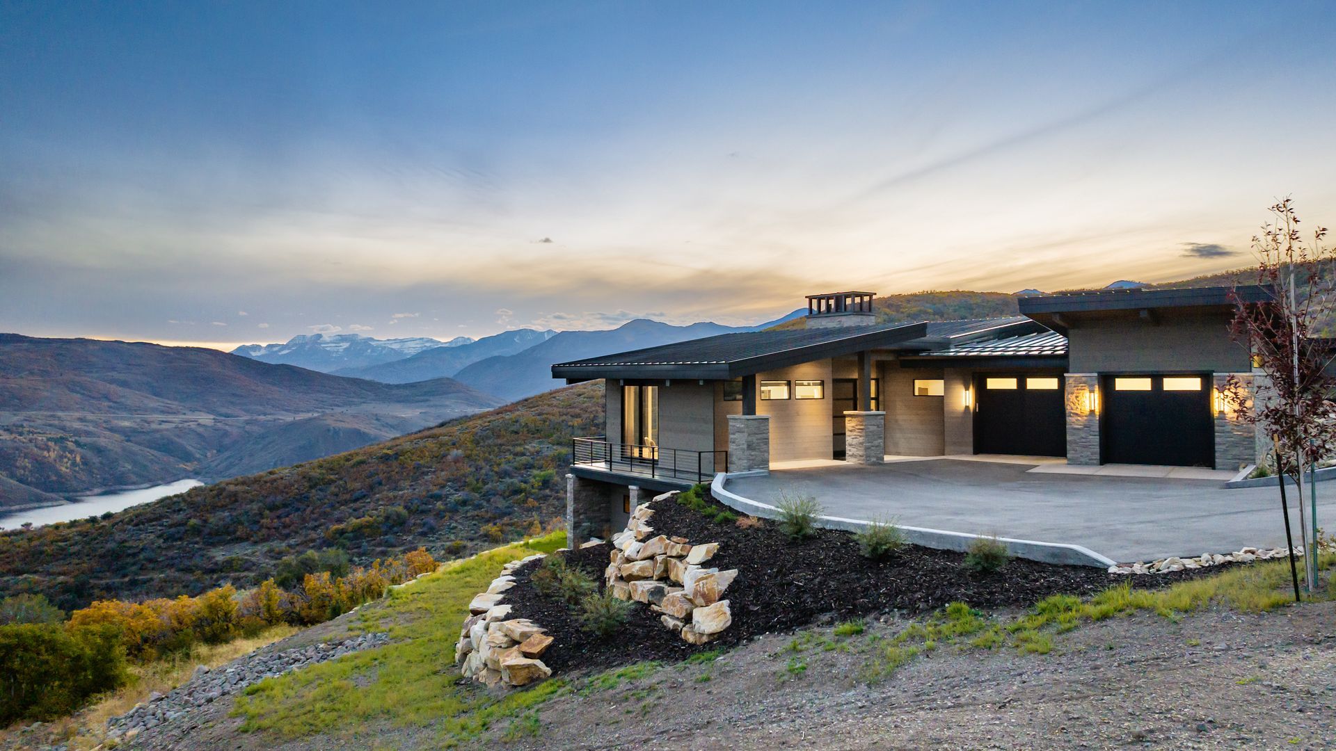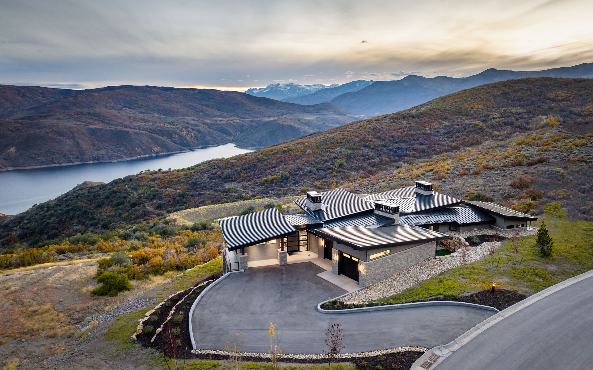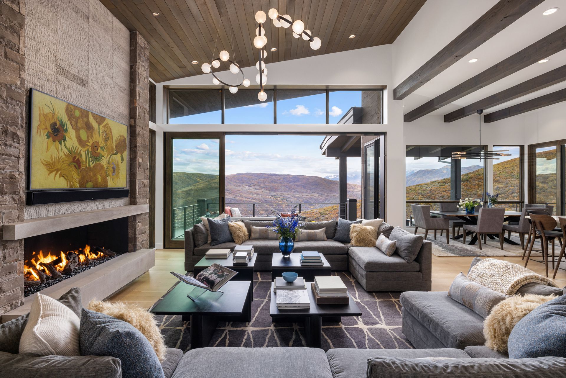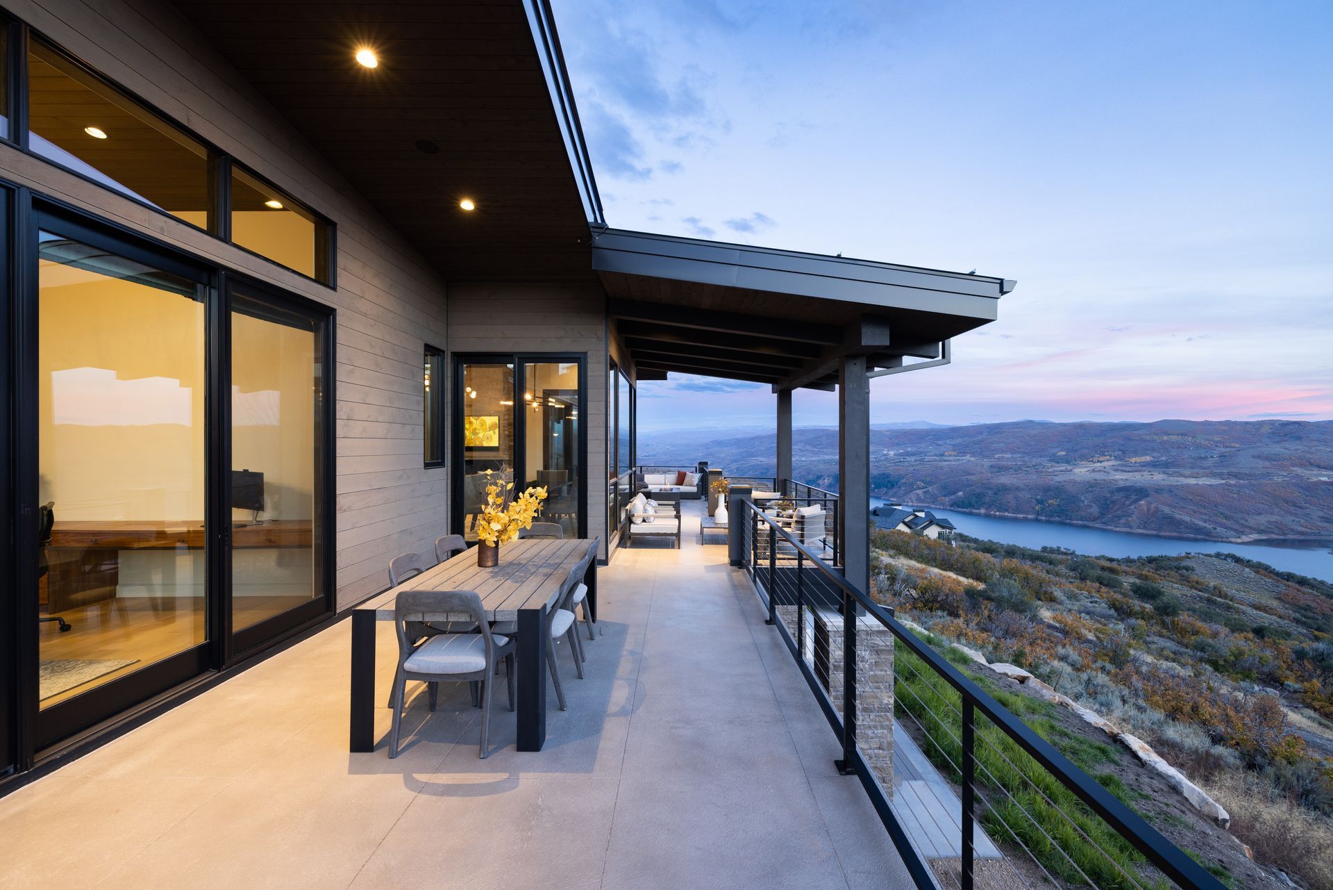 Perched above the sparkling waters of the Jordanelle Reservoir and capturing unobstructed vistas of Mount Timpanogos, this extraordinary custom home is a contemporary take on refined mountain living. The design team strived for timeless elegance and sophistication within the open-concept layout. The home showcases rich natural materials and expansive floor-to-ceiling windows that flood the interiors with light and frame the stunning alpine surroundings. Every detail has been thoughtfully curated for effortless entertaining and comfortable everyday living. Highlights include an exhibition-style chef's kitchen outfitted with Sub-Zero and Wolf appliances and a striking glass-enclosed wine cellar to display and preserve the client’s collection, The primary suite serves as a private sanctuary, featuring a spa-inspired steam shower, heated flooring, and direct access to a secluded hot tub—perfect for soaking in the majestic mountain views. The residence was designed and curated for its owners as a second home to act as a relaxing destination and a unique place to work remotely and carry out professional business. Access to outdoor adventures surrounds the property and the design supports the various activities as well as a restful destination stay.
