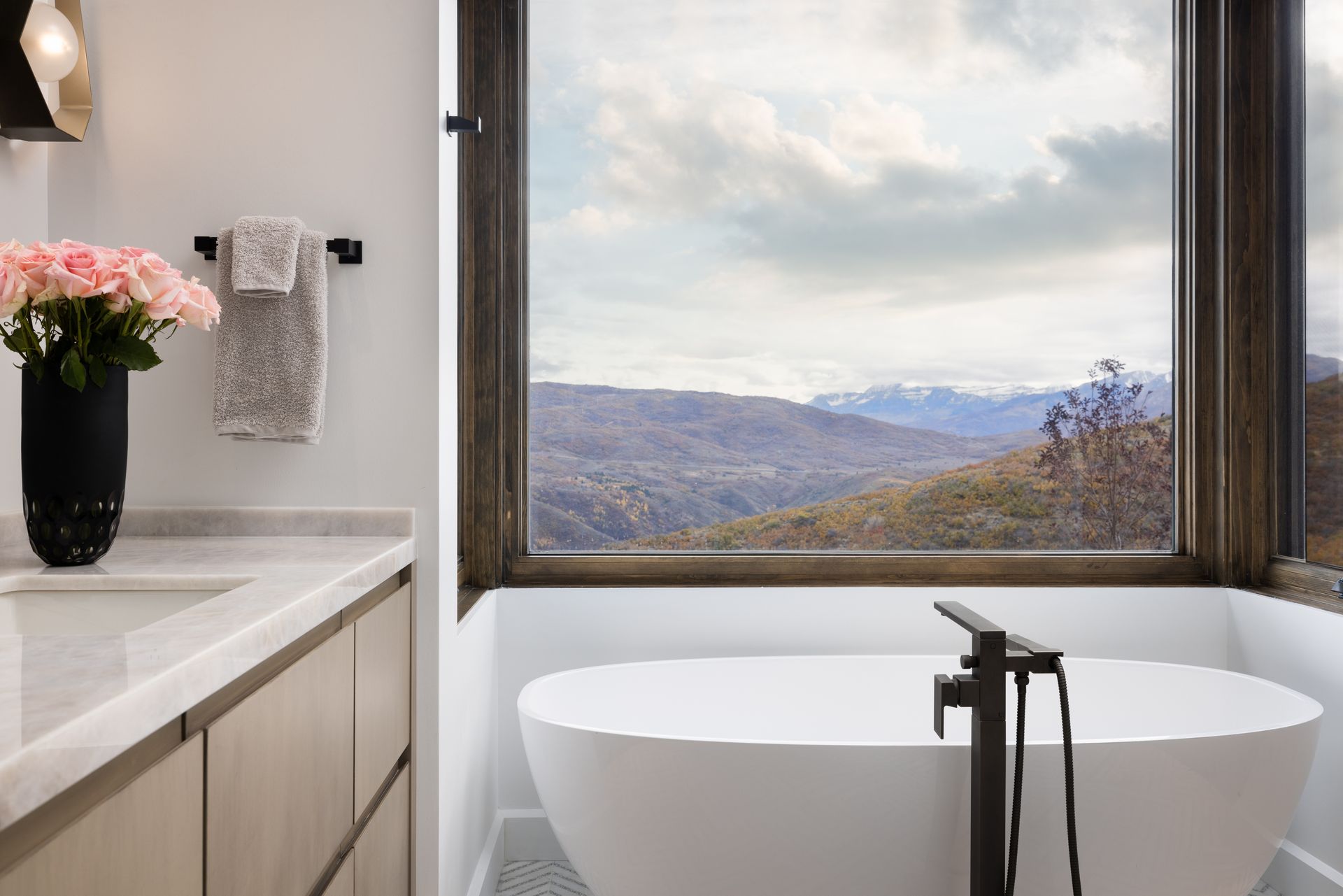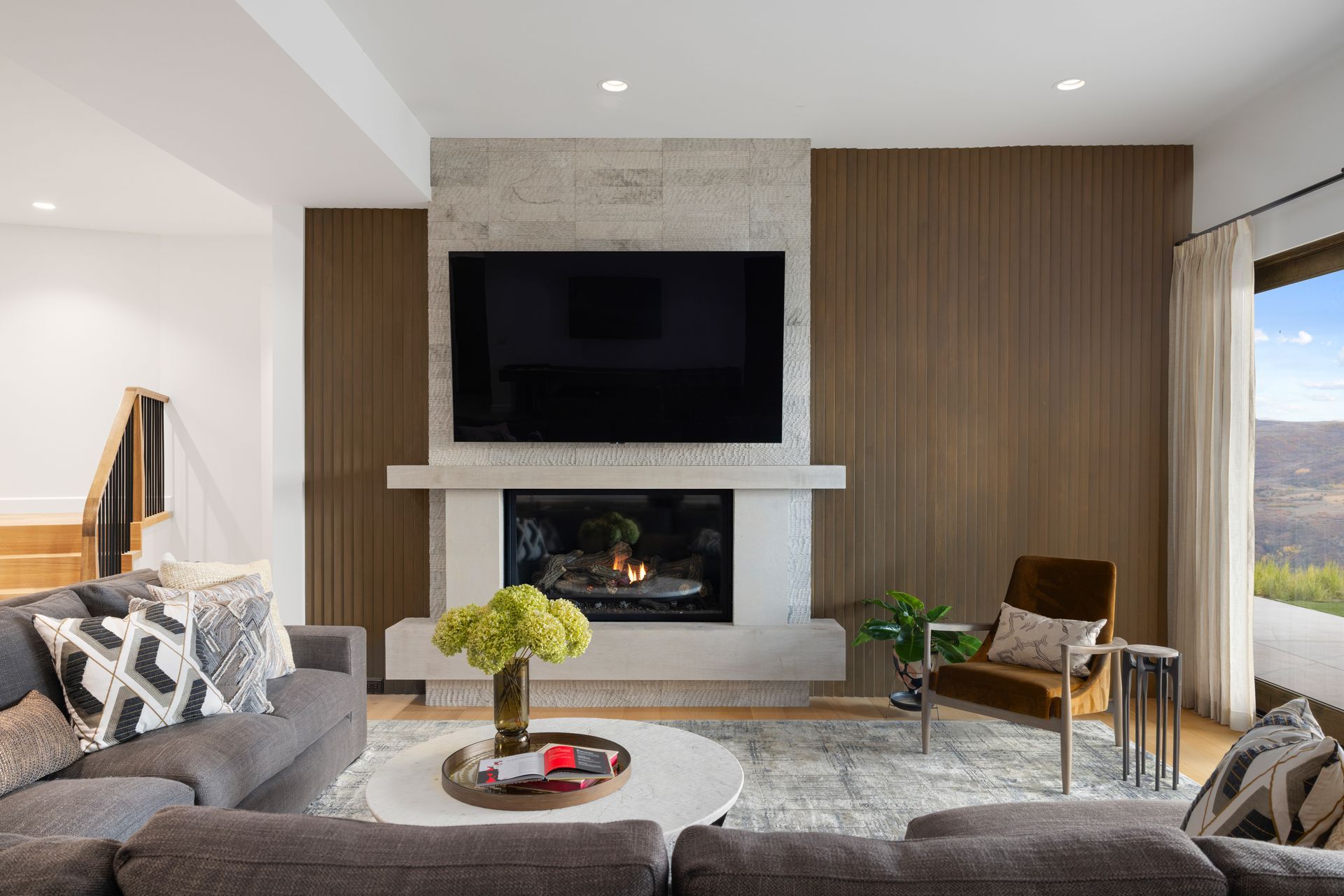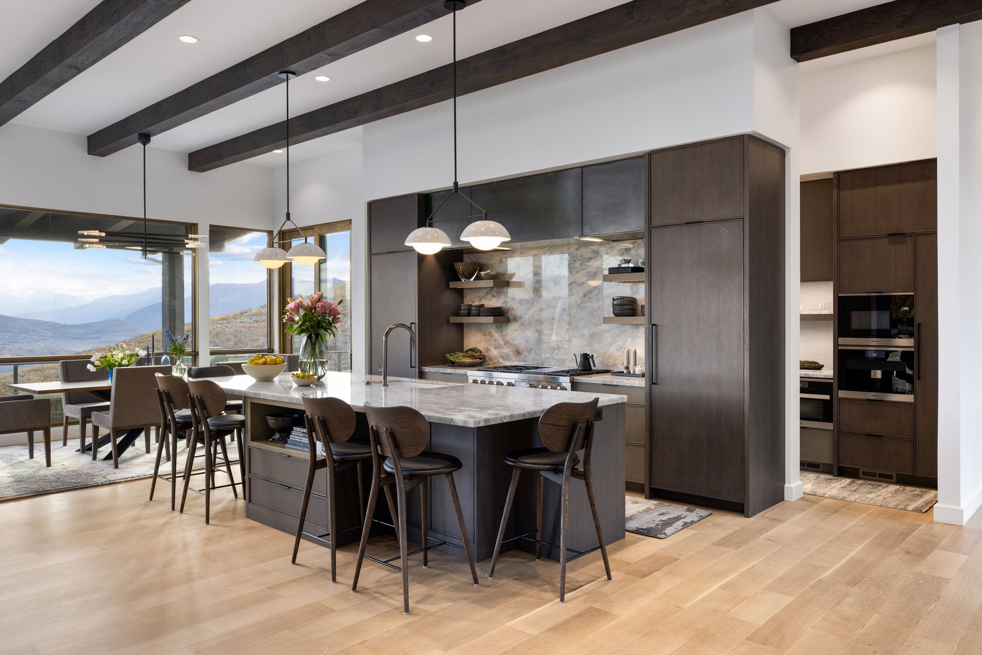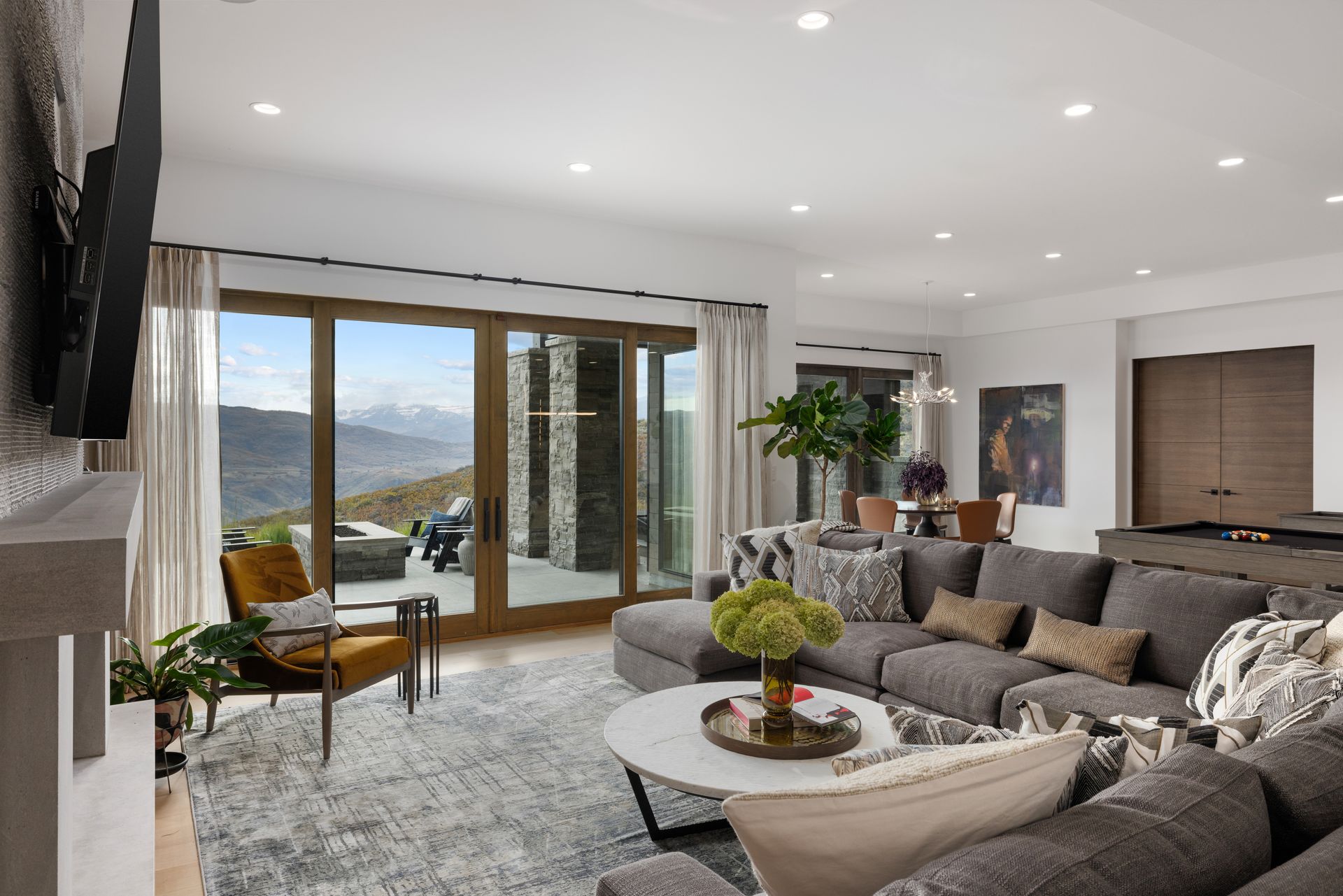 Perched above the sparkling waters of the Jordanelle Reservoir and capturing unobstructed vistas of Mount Timpanogos, this extraordinary custom home is a contemporary take on refined mountain living. The design team strived for timeless elegance and sophistication within the open-concept layout. The home showcases rich natural materials and expansive floor-to-ceiling windows that flood the interiors with light and frame the stunning alpine surroundings. Every detail has been thoughtfully curated for effortless entertaining and comfortable everyday living. Highlights include an exhibition-style chef's kitchen outfitted with Sub-Zero and Wolf appliances and a striking glass-enclosed wine cellar to display and preserve the client’s collection, The primary suite serves as a private sanctuary, featuring a spa-inspired steam shower, heated flooring, and direct access to a secluded hot tub—perfect for soaking in the majestic mountain views. The residence was designed and curated for its owners as a second home to act as a relaxing destination and a unique place to work remotely and carry out professional business. Access to outdoor adventures surrounds the property and the design supports the various activities as well as a restful destination stay.