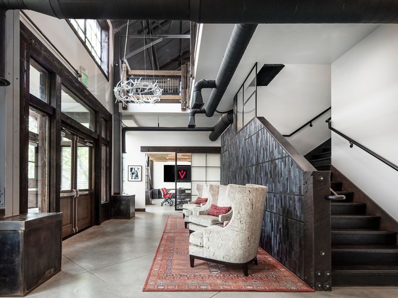 An interior office remodel for a prominent company headquarters. The design offers contrast to the surrounding nature taking inspiration from natural materials used in new forms and abstracted for a contemporary updated feel.